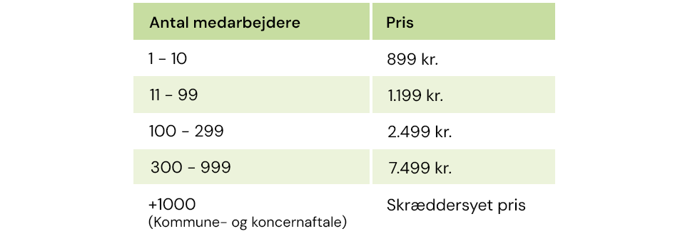 Se her priserne for medlemskabet. Har du spørgsmål til prisen, så ræk endelig ud til os.
